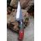Couteau de chasse Skinner & Tactical Urbain à lame fixe - Longueur totale 19cm - Longueur de lame 9cm - Lame en acier carbone 1075 demi brut de forge - Lame type trailing point plain edge finition 2 tons - Construction d'une seule pièce - Full tang - Plaquettes du manche en Bois 3D usiné - Manche ergonomique - Mitres en bois - Trou dans le manche pour dragonne - Etui similicuir - Fabrication artisanale