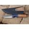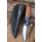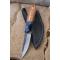 Couteau de chasse Skinner & Tactical Urbain à lame fixe - Longueur totale 18cm - Longueur de lame 8cm - Lame en acier carbone 1075 demi brut de forge - Lame type trailing point plain edge finition 2 tons - Construction d'une seule pièce - Full tang - Plaquettes du manche en bois - Mitres en bois - Etui cuir - Fabrication artisanale