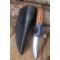 Couteau de chasse Skinner & Tactical Urbain à lame fixe - Longueur totale 18cm - Longueur de lame 8cm - Lame en acier carbone 1075 demi brut de forge - Lame type trailing point plain edge finition 2 tons - Construction d'une seule pièce - Full tang - Plaquettes du manche en bois - Mitres en bois - Etui cuir - Fabrication artisanale