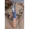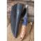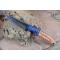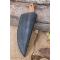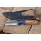 Couteau de chasse Skinner & Tactical Urbain à lame fixe - Longueur totale 18cm - Longueur de lame 8cm - Lame en acier carbone 1075 demi brut de forge - Lame type trailing point plain edge finition 2 tons - Construction d'une seule pièce - Full tang - Plaquettes du manche en bois - Mitres en bois - Etui cuir - Fabrication artisanale