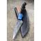 Couteau de chasse Skinner & Tactical Urbain à lame fixe - Longueur totale 19cm - Longueur de lame 9cm - Lame en acier carbone 1075 demi brut de forge - Lame type trailing point plain edge finition 2 tons - Construction d'une seule pièce - Full tang - Plaquettes du manche en résine - Manche ergonomique - Mitres en résine - Etui cuir - Fabrication artisanale
