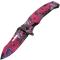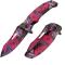 Couteau Skull Linerlock A/O Fuchsia Abs Handle Stainless Blade Clip CN300577PK