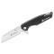 Bjr collectionneur de couteaux à système j'ai craqué pour ce couteau. Hélas il est préférable de manipuler sans gants car le bouton de déverrouillage est dur et minuscule. Une fois la lame sortie il faut actionner un bouton de déverrouillage puis agir sur une coulisse un peu raide pour rentrer la lame jusqu'à l'enclenchement. Avant tout cela il faut ôter un petit capuchon protégeant le logement de la lame. Ce n'est pas adapté pour ceux qui veulent un couteau à une main.