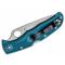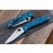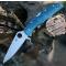 Le manche est équipé de plaquettes en FRN (Nylon Renforcé à la Fibre de Verre) de couleur bleue, avec la texturation bidirectionnelle brevetée pour une prise en main antidérapante et sécurisée. Le mécanisme de verrouillage Lockback assure une fixation solide et fiable de la lame en position ouverte. L'ouverture à une main est rapide grâce au Thumb Hole (trou pour le pouce) emblématique de la marque.
