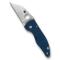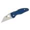 The Spyderco MicroJimbo folding knife is the compact and legally compliant version of the acclaimed Yojimbo 2 design. Made in the USA, it is built to be a high-performing everyday carry (EDC) knife, ideal for daily use. Its blue textured G10 handle provides a solid and secure grip while being visually appealing.