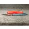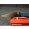 Le profil de la lame, d'une épaisseur de 0,30 cm, présente une émouture plate intégrale (Full-Flat Ground) pour une géométrie de coupe laser. Le Manche FRN bleu texturé offre une prise en main ergonomique et ultra-légère (119 g), facilitant le port quotidien malgré les dimensions impressionnantes du couteau. Note importante : Le K390 est un acier à outils haute performance ; il n'est pas inoxydable et peut se patiner. Un entretien régulier à l'huile est recommandé pour préserver sa finition nippone.