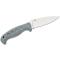 Ce couteau, créé par Sal Glesser, est équipé d'une lame en acier CPM CRU-WEAR, d'une dureté de 62-64 HRC, offrant une résistance exceptionnelle à la corrosion et une excellente tenue du tranchant. La lame de 11,23 cm et d'une épaisseur d'environ 4mm est dotée d'une lame Drop Point entièrement dentelé pour des coupes précises et efficaces, même dans les matériaux les plus résistants. Le manche en FRN gris, d'une longueur de 12,75 cm, assure une prise en main confortable et sécurisée, même dans des conditions difficiles.