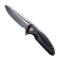 Lame en acier D2 finition "stonewashed" avec "flipper", mécanisme "Ball bearing" et cran intérieur.