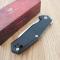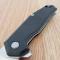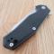Le Manche est équipé de plaquettes en Black G10 (Noir) finement texturées. Le G10 est un matériau composite réputé pour sa résistance quasi indestructible et son adhérence supérieure, même dans des conditions humides ou froides. Le mécanisme Liner Lock assure un verrouillage ferme de la lame, tandis que l'ouverture est facilitée par un Flipper réactif monté sur un système de rondelles en bronze pour une robustesse maximale.
