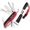 15 outils utiles dans 1 couteau suisse pliable: 1.Tournevis plat, 2.ouvre-boîtes, 3.tire-bouchon, 4.porte-clés, 5.couteau, 6.lime à ongles, 7.nettoie-ongles, 8.aiguille, 9.tournevis cruciforme, 10.scie, 11.ciseaux, 12.écailleur à poisson, 13.anneau.
