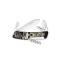 Ce modèle intègre 11 fonctions pratiques, incluant une alêne coupante avec poinçon, une aiguille à chas, et un décapsuleur équipé d'un tournevis n°3 et d'un plioir à fil. L'ouvre-boîtes avec tournevis n°1 et le tire-bouchon de qualité sommelier complètent cet ensemble d'outils indispensables.
