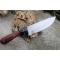 Couteau de Survie Bushcraft Survie à lame fixe - Longueur totale 24cm - Longueur de lame 12.5cm - Lame en acier carbone 1055 - Lame type drop point modifié plain edge finition satin - Construction d'une seule pièce - Full tang - Plaquettes du manche en bois - Mitres en résine - Etui simili cuir - Fabrication artisanale
