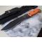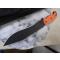Ce couteau à lame fixe est équipé d'une lame en acier 5160, d'une dureté de 58-59 HRC, offrant une résistance à la corrosion et une excellente tenue du tranchant. La lame de 20,32 cm est dotée d'une finition noire poudre pour une protection accrue. Le manche en G10 orange, d'une longueur de 13,34 cm, assure une prise en main sûre et confortable.