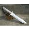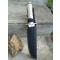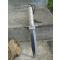 - Longueur totale 35cm. Longueur de lame 21cm. Lame clip point acier inox. Scie sur le haut de la lame. Manche en aluminum argenté creux. Pommeau avec boussole. Dragonne sur le pommeau. Etui nylon