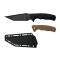 Le manche est équipé de deux jeux de plaquettes interchangeables en ABS, noir et marron, permettant d'adapter l'esthétique et la prise en main selon les préférences. Pensé pour un port pratique et sécurisé, le poignard est livré avec un étui en ABS noir doté d'un clip compatible M.O.L.L.E., idéal pour une fixation sur équipement tactique, sac ou ceinture.