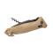 Le manche, en PA6 FV (polyamide chargé fibre de verre) avec une finition coyote tan, offre une prise en main confortable et fiabilité. De plus, le clip ceinture réversible et amovible permet un port facile et sécurisé. Le système de sécurité Axis Lock® assure une ouverture fluide et sécurisée, renforçant ainsi la fiabilité de cet outil en toutes circonstances.