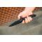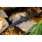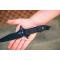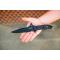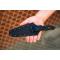 Le manche est composé de plaquettes en G10 noir, un matériau composite léger et extrêmement durable qui offre une prise en main ergonomique et sécurisée, même dans des conditions humides ou glissantes, grâce à sa texture agressive.