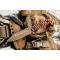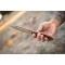 Bonne lame, coupe bien, à la volée comme en utilisation normale. Couteau léger. Le manche n'est pas désagréable le côté carré fait que les gants sont les bienvenus.