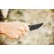 Bonne lame, coupe bien, à la volée comme en utilisation normale. Couteau léger. Le manche n'est pas désagréable le côté carré fait que les gants sont les bienvenus.