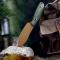 Couteau TRIVISA Aubergine Green Lame Acier 14C28N Manche Plaquettes Micarta Étui Kydex TVJM05GM14