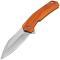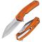 L'ouverture du couteau est assistée, permettant un déploiement rapide et fluide de la lame. Une fois ouverte, la lame est sécurisée par un mécanisme Liner Lock fiable. Le manche est fabriqué en aluminium anodisé orange, offrant non seulement une apparence distinctive mais aussi une prise en main solide et légère. La longueur fermée du couteau est de 12,07 cm, et sa longueur totale approximative une fois ouvert est de 20,96 cm.