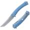 L'ouverture assistée permet un déploiement rapide et fluide de la lame. Une fois ouverte, la lame est solidement maintenue par un mécanisme Liner Lock. Le manche est fabriqué en aluminium anodisé bleu, offrant une prise en main légère et confortable, tout en ajoutant une touche de couleur distinctive.
