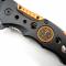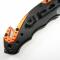 Longueur fermé 11,43cm. Longueur de lame 8,25cm. Système à ouverture assistée. Lame en acier 3Cr13 finition noire. Ouverture d'une main avec le thumb. Manche noir & orange avec logo EMT. Fonction brise vitres & coupe ceintures. Clip.