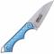 Le Manche Aluminum bleu texturé assure une prise en main ferme et légère. D'une longueur totale de 17,78 cm, ce couteau bénéficie d'une construction en Full Tang (soie complète) qui se prolonge en extended tang à l'arrière, pouvant servir de point d'impact ou de brise-vitre. Un trou pour dragonne (Lanyard hole) est également intégré. D'un poids de 154 g, il est livré avec une Housse ABS noire rigide permettant un port à la ceinture sécurisé et un accès rapide.