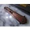 Le manche est en aluminium brun, pas en bois — léger, solide et durable. Le couteau est équipé d’un linerlock, d’un thumb stud pour une ouverture rapide et d’un clip de poche pour un port pratique.