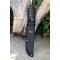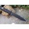 Lame de type dague serrated en acier inoxydable 3Cr13 avec finition noire, offrant une bonne performance de coupe et une résistance à la corrosion. Dureté : 52-54 HRC.