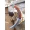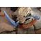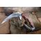 Couteau Griffe à lame fixe - Longueur du manche 13cm - Longueur de la grande lame 14.5cm - Longueur de la petite lame 10.5cm Lame de type griffe - Lame en acier carbone 1055 - Epaisseur 5mm - Construction d'une seule pièce - Full Tang - Plaquettes du manche en bois - Entretoises en laiton - Mosaic pins - Fabrication Artisanale - Etui cuir