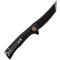 La lame de 9,53 cm est fabriquée en acier inoxydable 420, connu pour sa bonne résistance à la corrosion et sa facilité d'entretien. Elle présente une dureté Rockwell de 57-59 HRC, offrant un bon équilibre entre rétention de tranchant et facilité d'affûtage. La lame arbore un design de tanto modifié avec un affûtage Scandi grind, optimisé pour le perçage et les coupes précises, et est recouverte d'un revêtement PVD noir "tumbled" pour une durabilité accrue et un look discret.