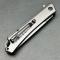 Ce couteau est équipé d'une lame de 9,53 cm en acier inoxydable avec un revêtement TiCN gris, offrant une bonne résistance à la corrosion et un aspect furtif. L'ouverture est rapide grâce à son mécanisme assisté, actionné via une soie étendue. Le manche est fabriqué en acier inoxydable gris, garantissant robustesse et une prise en main confortable.