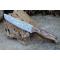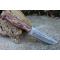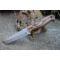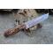 Couteau de chasse Skinner Survie à lame fixe - Longueur totale 20.5cm - Longueur de lame 10.5cm - Epaisseur de lame 5mm - Lame en acier carbone 1055 imitation damas - Lame type tanto - Construction d'une seule pièce - Full tang - Plaquettes du manche en bois - Trou pour dragonne - Etui simili cuir - Fabrication artisanale