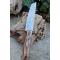 Couteau Tanto Lame Acier Carbone 1055 Imitation Damas Manche Bois Etui SimiliCuir Fabric Artisanale