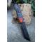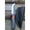 Couteau de chasse Tanto Tactical à lame fixe - Longueur totale 19.5cm - Longueur de lame 9.5cm - Lame en acier carbone 1075 demi brut de forge - Lame type tanto plain edge finition 2 tons - Construction d'une seule pièce - Full tang - Plaquettes du manche en bois - Mitres en bois - Etui cuir - Fabrication artisanale