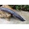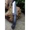 Couteau de chasse Skinner Survie à lame fixe - Longueur totale 20cm - Longueur de lame 10cm - Lame en acier carbone 1075 demi brut de forge - Lame type tanto plain edge finition 2 tons - Construction d'une seule pièce - Full tang - Plaquettes du manche en bois - Trou pour dragonne - Etui cuir - Fabrication artisanale