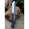 Couteau de chasse Skinner Survie à lame fixe - Longueur totale 20cm - Longueur de lame 10cm - Lame en acier carbone 1075 demi brut de forge - Lame type tanto plain edge finition 2 tons - Construction d'une seule pièce - Full tang - Plaquettes du manche en bois - Trou pour dragonne - Etui cuir - Fabrication artisanale