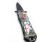 Couteau pliant de poche avec croix Templiers et Chevalier en relief. Le métal utilisé pour ce couteau offre un très bon équilibre entre la solidité et la résistance à la corrosion.