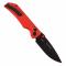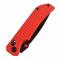 Le manche est fabriqué en Aluminium anodisé rouge (Red Anodized Aluminum), doté d'une Diamond Texture (texture diamant) usinée en 3D pour un grip infaillible même dans des conditions difficiles. Ce modèle est équipé d'un mécanisme de verrouillage Cross-Bar Lock (système à barre transversale), permettant une manipulation fluide et totalement ambidextre. L'ouverture est facilitée par un Thumb Stud monté sur des roulements à billes, assurant un déploiement rapide et sans effort.