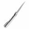 Le Tenable Entity (référence B1036F3) se décline dans une finition argentée d'une grande élégance. Sa lame de 9,10 cm en lame acier Sandvik 14C28N (58-60 HRC) bénéficie d'une finition Stonewash (délavée à la pierre) qui offre un aspect mat et une résistance exceptionnelle aux micro-rayures. Cet acier suédois est reconnu pour sa finesse de grain et sa facilité de réaffûtage.