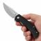 Mécanisme et Construction L'ouverture se fait rapidement et sans effort grâce au flipper, le couteau étant équipé de roulements à billes en céramique pour une action ultra-fluide. Le manche est doté de plaquettes en G10 noir avec un motif "Frag Pattern" texturé, assurant une excellente sécurité de prise. Le mécanisme de sécurité Liner Lock garantit un verrouillage sûr.