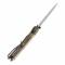 Le Manche est composé de plaquettes en PEI Ultem de couleur Ambre. Ce matériau ultra-résistant et translucide laisse entrevoir la mécanique interne, renforçant l'aspect technique et précieux de l'objet. Le système de verrouillage Cross-bar Lock est non seulement extrêmement sûr, mais il permet également une fermeture fluide et ambidextre, transformant chaque manipulation en un moment de satisfaction mécanique.