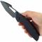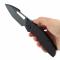 Le manche est composé de plaquettes en Manche Micarta noir (Black Canvas), offrant une texture douce et une prise en main extrêmement adhérente, même en conditions humides. D'une longueur fermée de 10,49 cm, ce couteau utilise un mécanisme Liner Lock fiable. L'ouverture est extrêmement polyvalente grâce à l'ouverture flipper (Extended Tang), au Thumb Stud ou au "Thumb Pull".