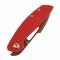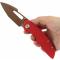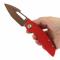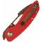 Le manche est composé de plaquettes en Manche G10 rouge avec une texture "Coarse Textured" (gros grains), garantissant une adhérence maximale et une prise en main sécurisante. D'une longueur fermée de 10,49 cm, ce couteau utilise un mécanisme Liner Lock fiable. L'ouverture est extrêmement polyvalente grâce à l'ouverture flipper (Extended Tang), au Thumb Stud ou au "Thumb Pull".