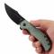 Mécanisme et Construction Ce couteau dispose d'un pivot à roulements à billes en céramique pour un déploiement ultra-fluide. Le manche est doté de plaquettes en micarta vert (bien que la couleur soit indiquée comme "Black & Red" dans les specs, l'article principal est "Green Micarta Handle", donc je priorise le vert) un matériau à la fois léger et offrant une excellente prise en main. Le mécanisme de sécurité Liner Lock assure un verrouillage fiable et facile de la lame.