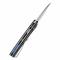 Ce couteau a une longueur totale de 19,234 cm une fois ouvert, avec un manche d'environ 11,26 cm. Le manche est fabriqué en G10 noir, un matériau qui offre une prise en main confortable et sécurisée grâce à sa texture et à ses bords chanfreinés. Son contour, inspiré par la tête du corbeau, contribue à un design ergonomique qui réduit la fatigue lors d'une utilisation prolongée.