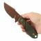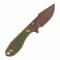 Le manche est équipé de plaquettes en Manche G10 de couleur Olive Green, sculptées de manière ergonomique pour offrir une prise en main sûre et confortable, quelle que soit la taille de la main. Sa construction en pleine soie (Full Tang) garantit une solidité structurelle à toute épreuve pour les travaux de coupe quotidiens ou les sorties en extérieur.