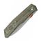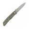 Couteau Fox "The Sicilian", lame finition "stonewashed" à cran intérieur et à bouton plat, manche micarta vert, entretoise et bouton plat aluminium anodisé orange, avec clip.