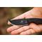 Couteau Bushcraft TOPS Knives 3 Pointer 1095 Black Blade Black Micarta Handles Kydex Sheath Made USA à lame fixe - Longueur totale 16.84cm - Longueur de lame 7.95cm - Epaisseur de lame 3.30mm - Lame de type drop point plain edge finition black - Construction d'une seule pièce - Full tang - Lame en acier carbone 1095 - Dureté 56-58 HRC - Plaquettes du manche en black micarta - Trou dans le manche pour dragonne - Etui kydex - Designer: Leo Espinoza - Made In USA